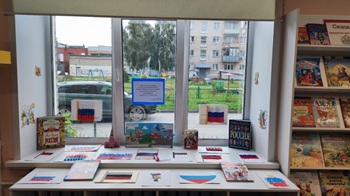 В Центральной детской библиотеке ко Дню флага России подготовлена книжная выставка. А воспитанники группы «Теремок» дошкольного отделения «Журавушка» для творческой выставки предоставили работы, на которых изображен флаг нашей страны.